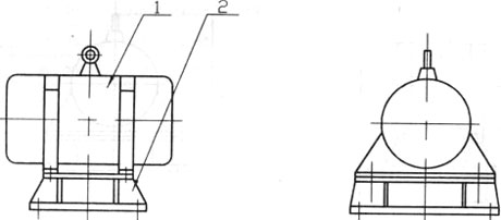 結(jié)構(gòu)如圖1所示。由振動電機(jī)(1)、底座(2)兩部分組成。振動電機(jī)和底座由螺栓緊密地固定為一體,由于底座堅固地安裝在料倉壁上,這樣就構(gòu)成了單質(zhì)點定向強(qiáng)迫振動系統(tǒng)。