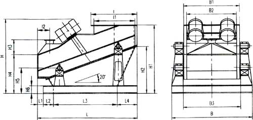 (1)ZSG系列單層篩外形及安裝尺寸。注:下圖為封閉式振動篩,敞開式無進(jìn)料口、除塵口,亦無I、I1、I2、H3之尺寸。型號 | ZSGB-10×20 | ZSGB-10×30 | ZSGB-15×30 | ZSGB-15×40 | ZSGB-15×50 | ZSGB-20×50 | ZSGB-20×60 | ZSGB-20×70 | ZSGB-20×18 |